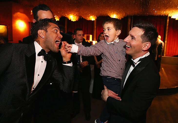 Вот фото из января 2016 года (награждение «ЗМ»-2015). Дани Алвес играет с трехлетним Тиаго, сидящим на руках у отца. Матео уже родился (в сентябре 2015-го), но пока слишком мал для подобных мероприятий.