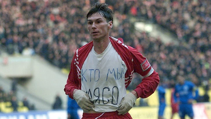 Егор Титов сравнял с передачи Бесчастных, задрал футболку и показал майку со ставшей впоследствии культовой надписью.