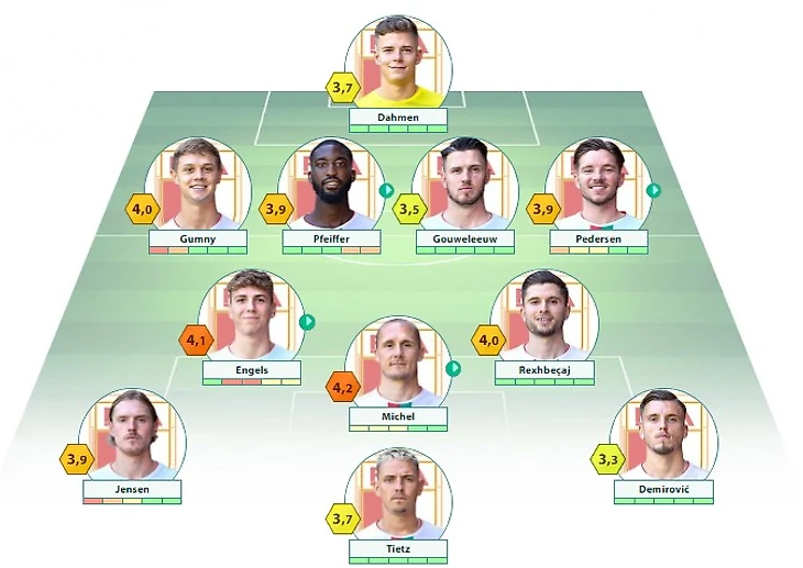 «Аугсбург»: Дамен – Гумны, Пфайффер, Гауэлеу, Педерсен – Йенсен, Энгельс, Реджбечай, Демирович (c) – Титц, Михель