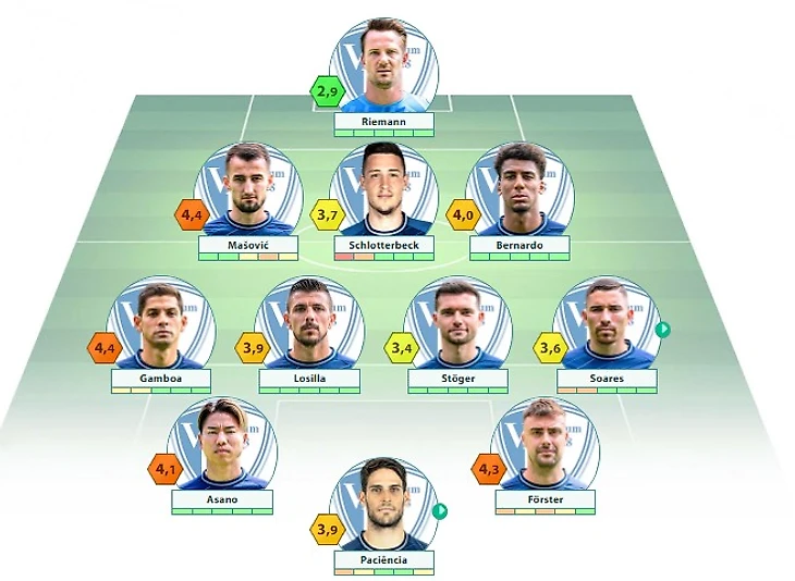 «Бохум»: Риманн – Машович, Шлоттербек, Бернардо – Гамбоа, Лосилла (с), Штегер, Соарес – Асано, Ферстер – Пасиенсия