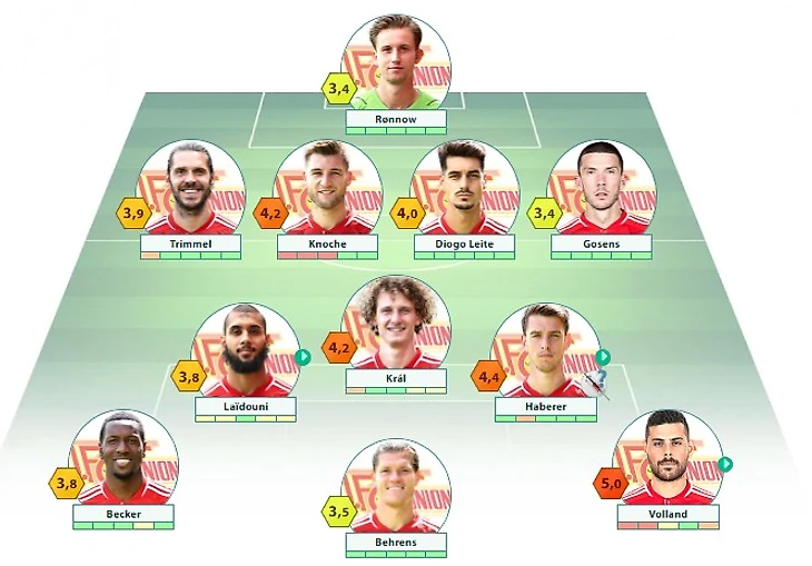 «Унион»: Реннов – Бонуччи, Knoche, Leite – Крал – Триммель (c), Лаидуни, Хаберер, Гозенс – Беккер, Беренс