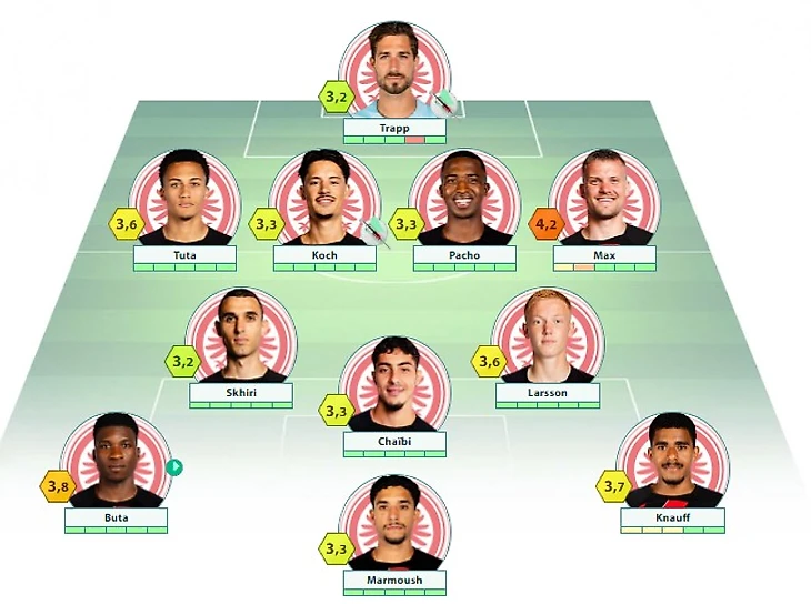 «Айнтрахт»: Граль – Тута, Кох (c), Пачо – Бута, Ларссон, Схири, Макс – Гетце, Шаиби – Мармуш