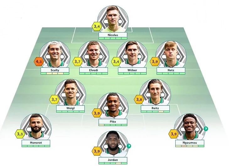 «Боруссия Менхенгладбах»: Николас – Скалли, Эльведи, Вебер, Нетц – Райтц, Вайгль(c) – Онора, Плеа, Нгуму – Сьебатшо