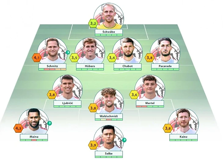 «Кельн»: Швэбе – Шмитц, Хюберс, Шабо, Пакярада – Любичич, Мартель – Майна, Вальдшмидт, Кайнц (c) – Зельке