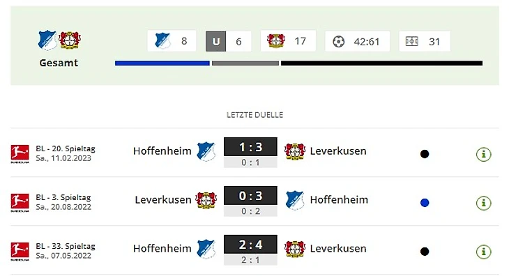 Встреча лидеров. «Хоффенхайм» показывает лучшую в Бундеслиге статистику по выездным матчам, а «Байер» занимает первую строчку в турнирной таблицы немецкого первенства.