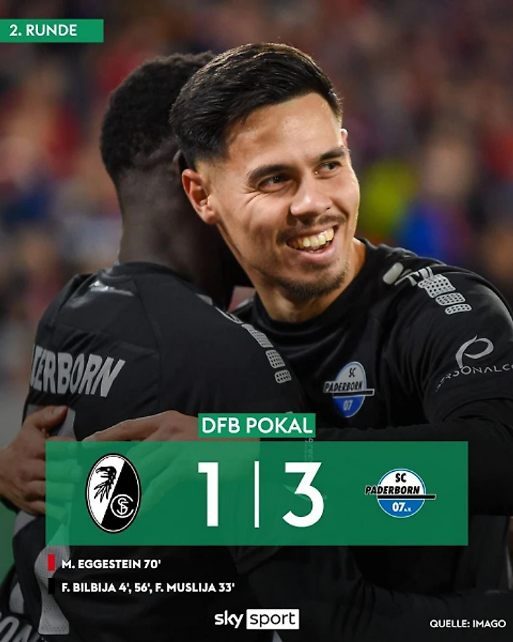 Уже на четвертой минуте Филип Бильбия вывел «Падерборн» вперед. Муслия и все тот же Бильбия довели игру затем и до счета 0-3, на что хозяева ответили лишь голом Эггештайна, который можно назвать голом престижа.