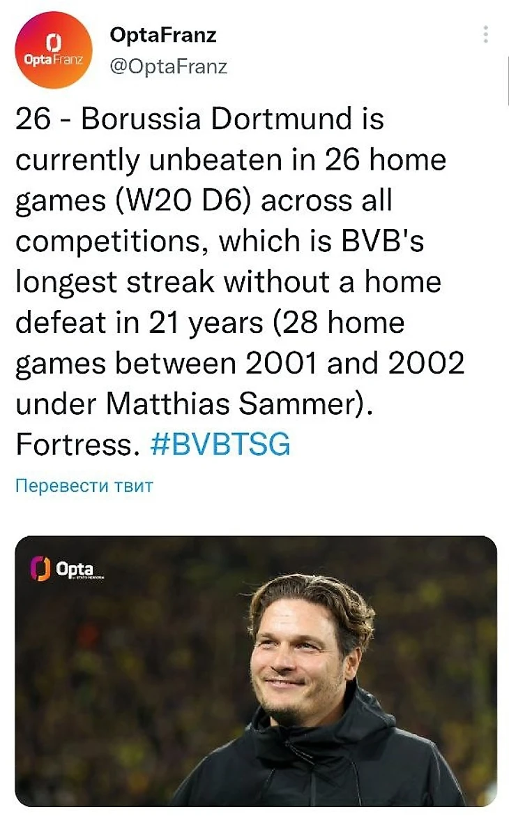 После триллера, который дортмундская «Боруссия» выдала во Франкфурте в последнем туре Бундеслиги, Эдин Терзич решился на эксперименты в атакующей линии. В нападении появились Байно-Гиттенс и Мукоко. Также вернулся в основу выздоровевший Рюэрсон. А Хуммельс получил передышку, его сменил Зюле.