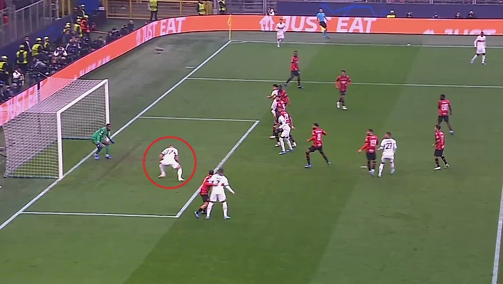 Оливье Жиру мощно пробил в Джанлуиджи Доннарумму – а Леау идеально сложился, чтобы ударить через себя в падении при относительно удобном отскоке.