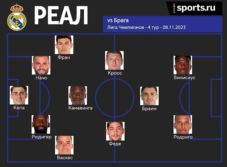 Карвахалю и Беллингему стоит предоставить отдых. Кроос сменит Модрича. Начо вместо Алабы. Родриго выйдет вместо Хоселу, попытавшись вновь показать свои лучшие качества в своем любимом турнире. 5 изменений в стартовом составе по сравнению с игрой против «Райо».