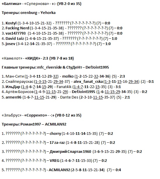 4. Артём Борисов (1-4-9-11-15-21-29) - DefJoint1995 (1-6-11-15-29-34-35) 0:2