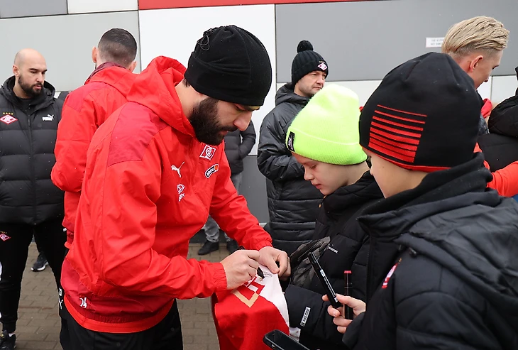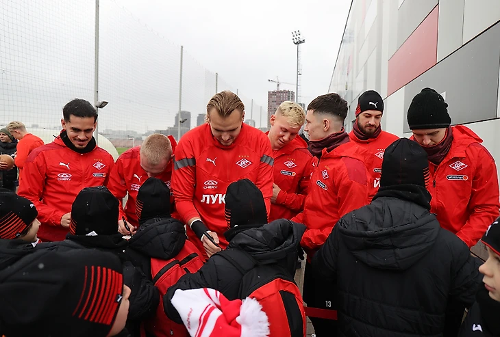 Георгий Джикия, Квинси Промес и другие игроки сфотографировались с юными гостями и раздали автографы, после чего дети до самого конца тренировки с интересом наблюдали с трибуны за работой профессиональных футболистов.