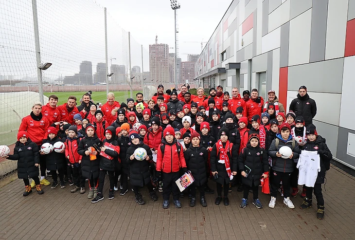 Сегодня на тренировке побывали дети — воспитанники Академии имени Фёдора Черенкова и ребята, которые занимаются в сети футбольных школ «Спартак Юниор».