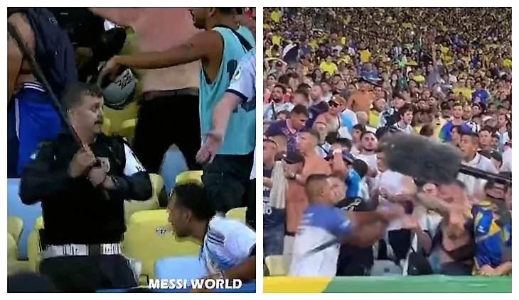 На одной из трибун «Мараканы» произошел конфликт, когда исполнялись национальные гимны двух стран. Стычка разгорелась в секторе, где не было разделения между фанатами хозяев и гостей. Полиция отреагировала жестко и применила дубинки против болельщиков.