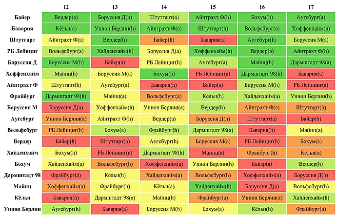 Даник: Если выносить за скобки «Баварию», «Байер» и «РБ Лейпциг», лучший предстоящий календарь у «Фрайбурга». Так что, если у вас есть Грифо и Атобулу, можно смело оставлять их до зимнего перерыва. На ближайшие три тура можно присмотреть кого-нибудь из «Хоффенхайма», но если уходить в персоналии, то, честно сказать, я не вижу никого для своей команды. Среди аутсайдеров я бы отметил календарь «Хайденхайма» и «Бохума» (через пару туров у «Майнца»), можно взять дешёвого защитника и в подходящие моменты выпускать его в старт или на подстраховку первым на лавку.