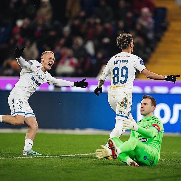 Это расшевелило «Динамо», а ЦСКА стал потихоньку тонуть. На 54-й минуте Бителло сделал дубль: добавил гол с лета. Бразилец вообще ярко влетел в РПЛ: не всегда забивает или отдает (до этого в РПЛ – только ассист с «Ахматом» и гол «Уралу»), но регулярно создает остроту.