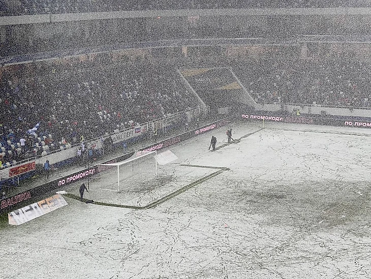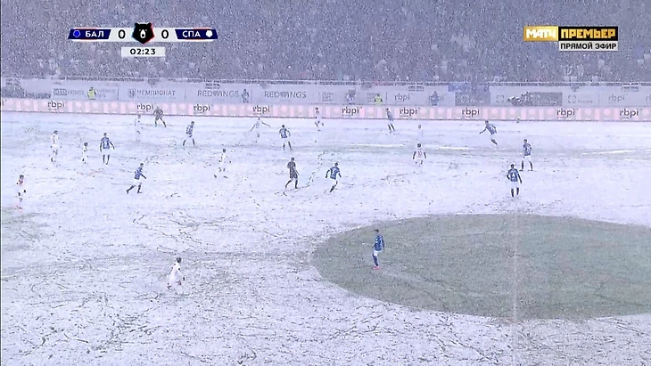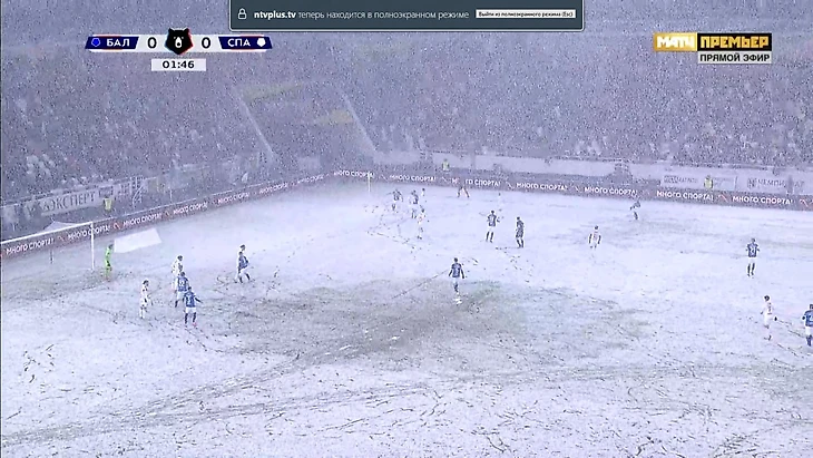 «Спартак» приехал играть матч с «Балтикой», но в Калининграде начался снегопад, поэтому трансляция выглядит так.