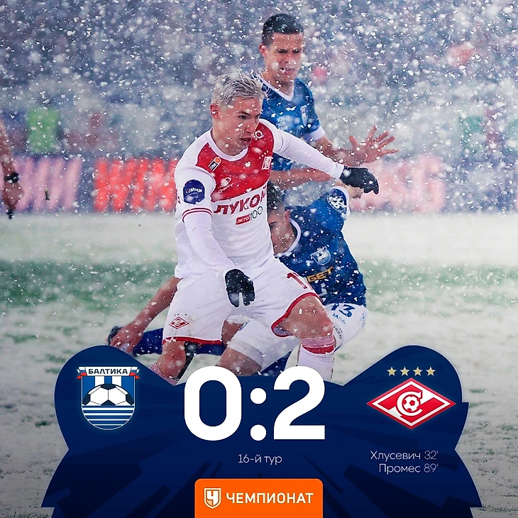 «Спартак» и «Балтика» сыграли матч 16-го тура РПЛ в нефутбольных условиях. Красно-белые победили и поднялись в топ-4.