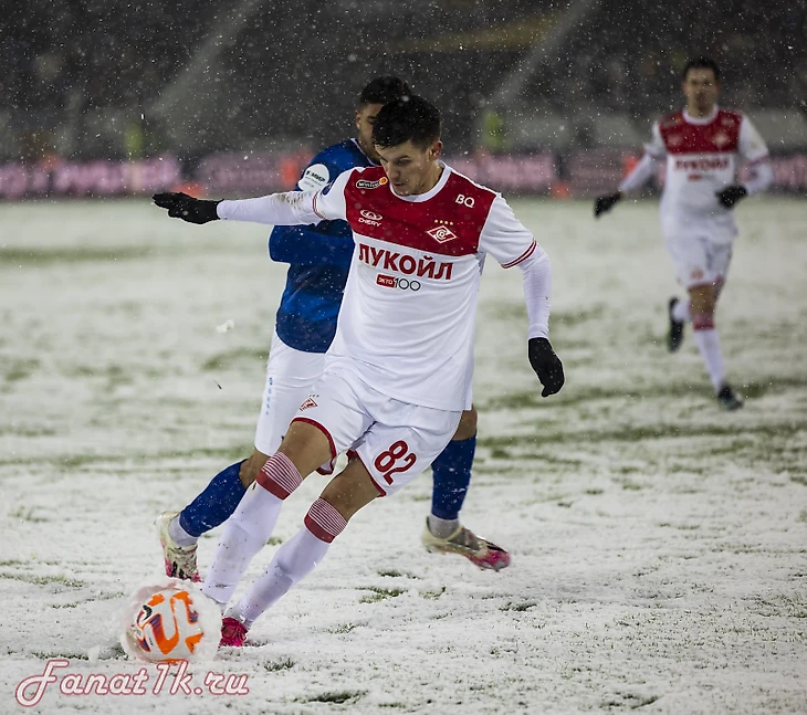 Когда судья Шафеев дал стартовый свисток, подумалось о том, что популярное в своё время и на футболе скандирование «Шайбу! Шайбу!» актуально в этот вечер как никогда. Газон в Калининграде был сплошным белым ковром. Снег валил и валил. Линии вратарских и штрафных не было видно, поэтому уже после нескольких минут игры рефери остановил встречу и взял паузу, чтобы поле почистили в самых важных местах. Бело-розовый мяч тоже проглядывался не без труда – стоило бы отыскать покраснее. Да и «Спартак», словно для конспирации, вышел в светлой форме. Кстати, в основу красно-белых вернулся Соболев. Возможно, потому что шёл снег, а не дождь.
