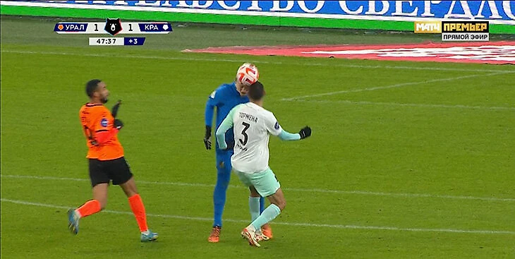 В конце тайма «Краснодару» стало еще больнее: Матвей Сафонов вылетел из штрафной и столкнулся с одноклубником Витором Торменой. Оба в итоге не продолжили матч: защитник покинул поле прямо перед перерывом, а вратарь не вышел на второй тайм. Их заменили Георгий Арутюнян и Станислав Агкацев.