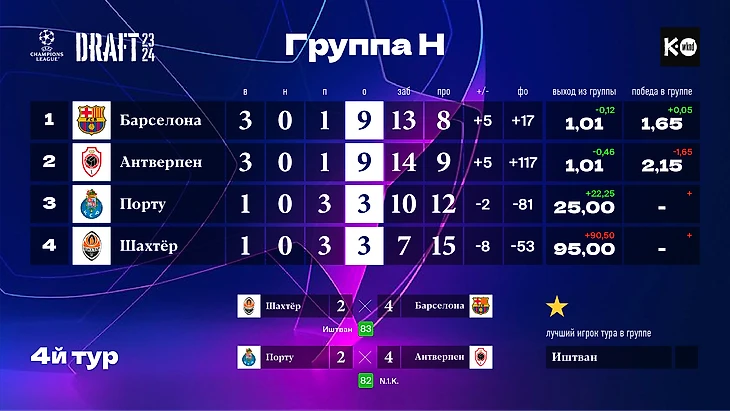 Лига Чемпионов 2023/24. Командный драфт. 4й тур