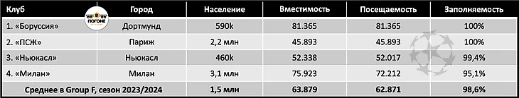 «Боруссия» и «ПСЖ»: 2 из 4 клубов во всех 8 группах со 100% посещаемостью на своих аренах.