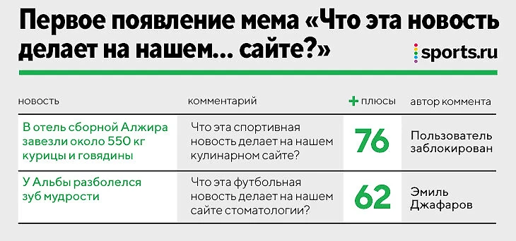 Некоторых мем бесил уже в 2016-м: так 60 минусов поймал комментарий, в котором Sports.ru назвали медицинским (новость про вирус Зика, проникший в Бразилию во время Кубка конфедераций-2013), и кучу плюсов получили ответы на него: