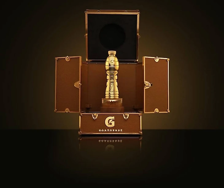 Известный производитель энергетических напитков вручил Лионелю набор из восьми золотых бутылок с фирменным логотипом.