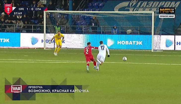 Единственное, чем отличился защитник, это была красная, на 40 минуте матча, после заброса на врывание Ковалёва, на рывке он запутался в его ногах грубо срубая игрока, чем и обрек свою команду во 2 тайме отыгрываться теперь в меньшинстве: