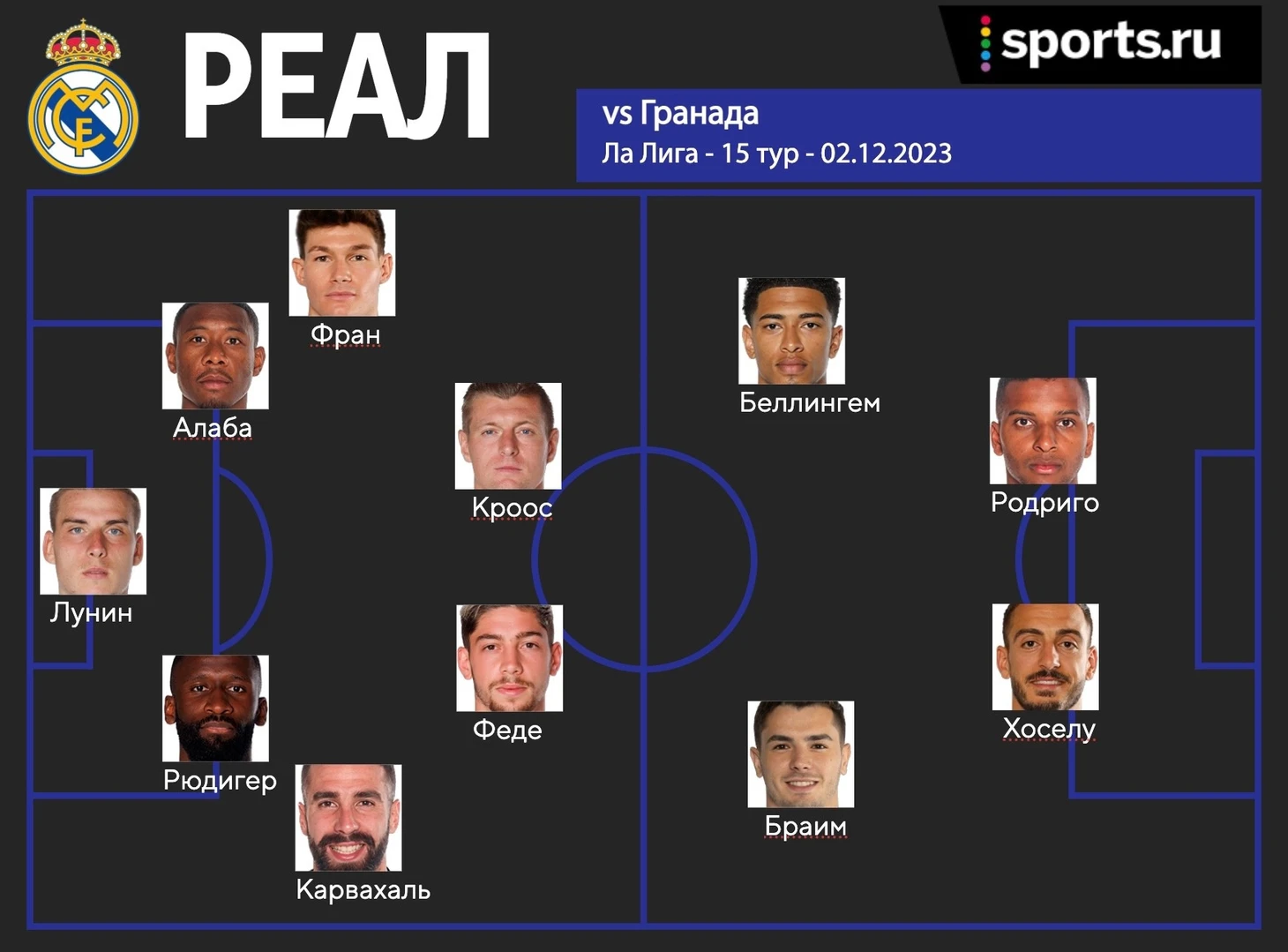 Есть большая вероятность, что с «Гранадой» мы увидим самый атакующий состав «Мадрида» в этом сезоне. Возможно, это будет единственная встреча, где Анчелотти выпустит со старта одновременно Беллингема, Браима, Родриго и Хоселу.