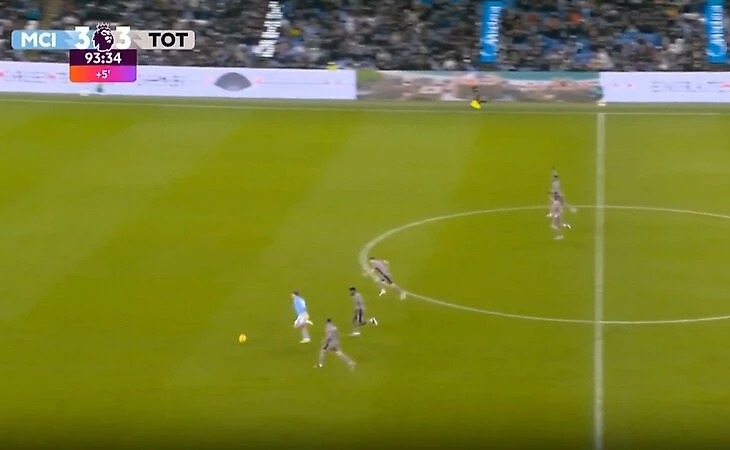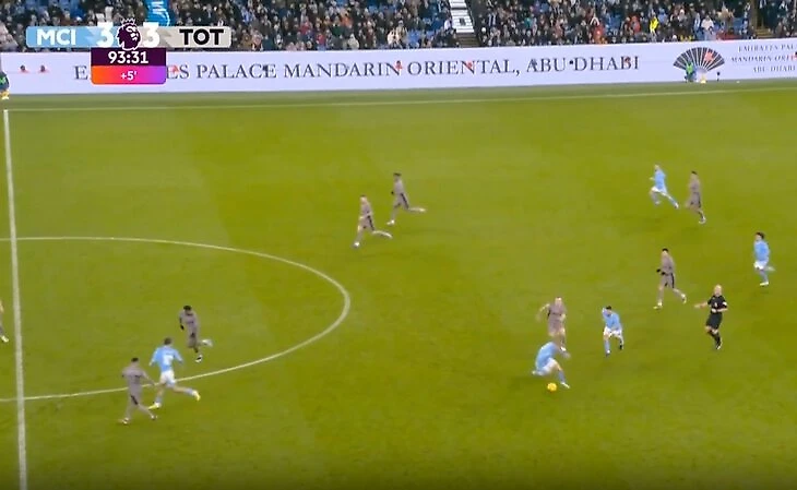 Холанд сделал заброс на Грилиша за спину «Тоттенхэму» и Джек выбегал на голевой момент.