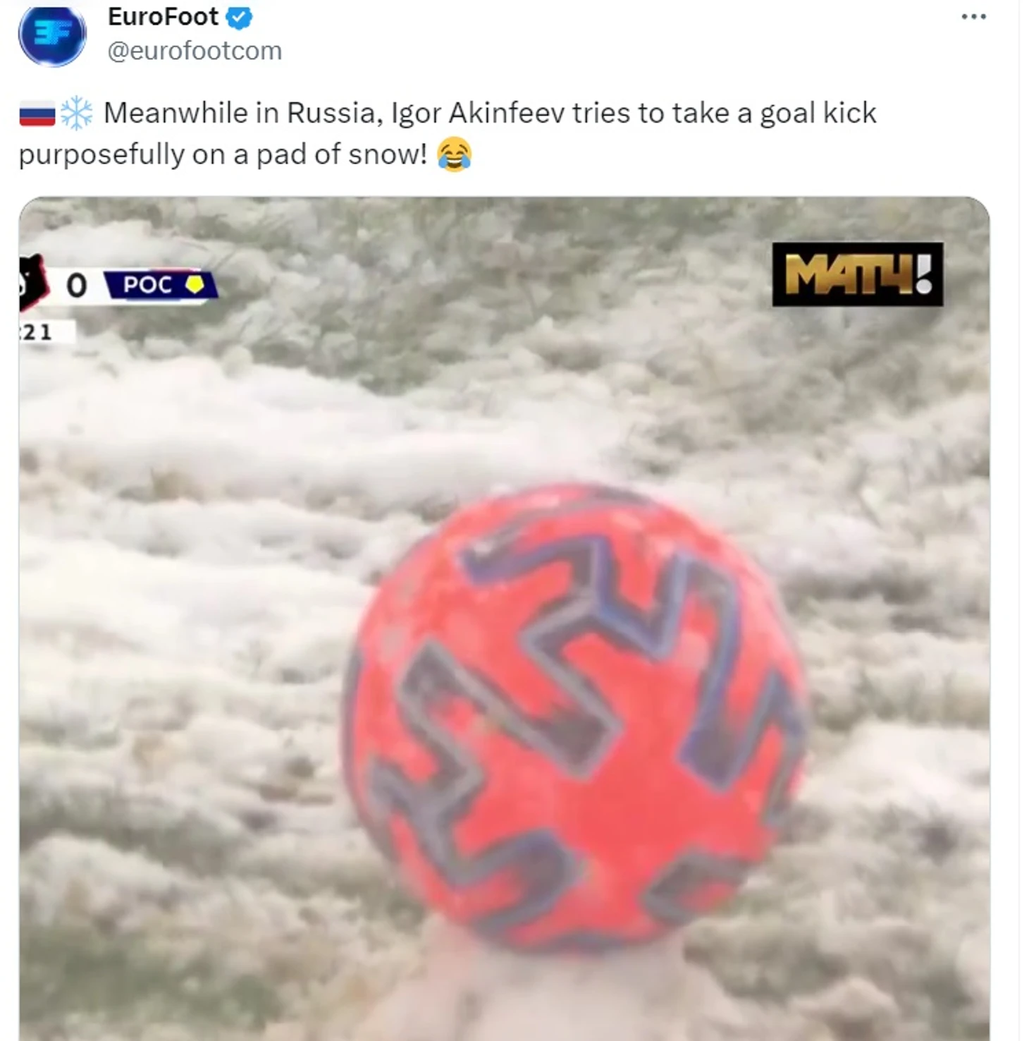 Дело в том, что во время игры ЦСКА с «Ростовом» Акинфеев хотел исполнить удар от ворот, установив мяч на снежную кочку, но судья запретил.