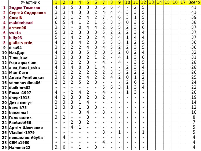 Сыграли варианты: 1-4-9-10-15-21-25-29-32-34-37-38 (12)