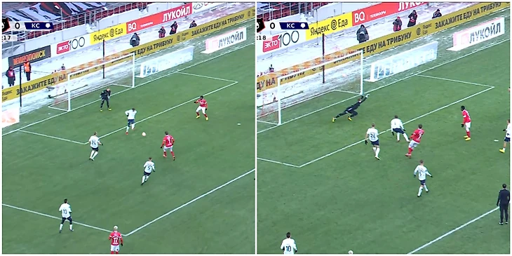 3) Рома Ежов раньше так умно играл (когда в мега форме был), сейчас оч часто удивляет принятием решений. Особенно когда зона пустая была, он 1в1, можно смещаться вдоль лицевой, а он безадресно избавился(навесом/прострелом) от мяча несколько раз, просто в ноги ЦЗ Спартака. Или когда лва игрока в центре, а он головой скидку в сторону вратаря делает