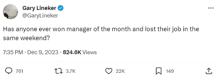 20 тысяч лайков за полчаса: вопрос, который Гари Линекер задал после унижения «МЮ», стал вирусным в сети
