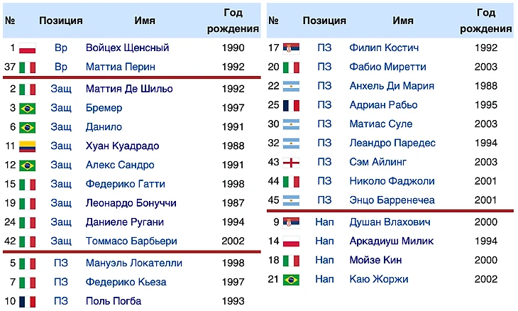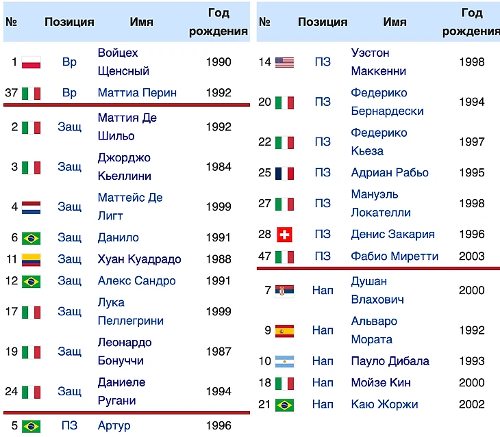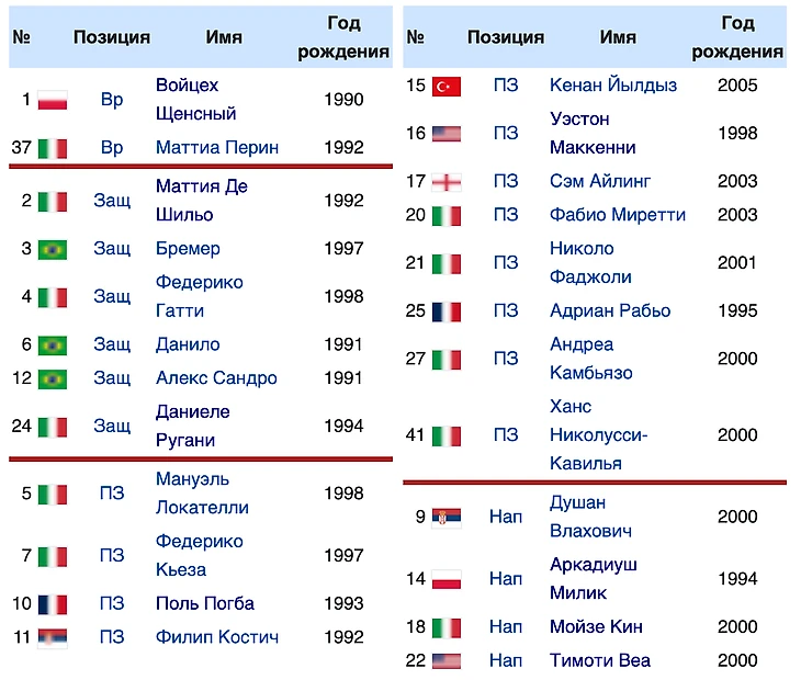 Итого в свой первый сезон после возвращения Аллегри входил со следующими игроками.
