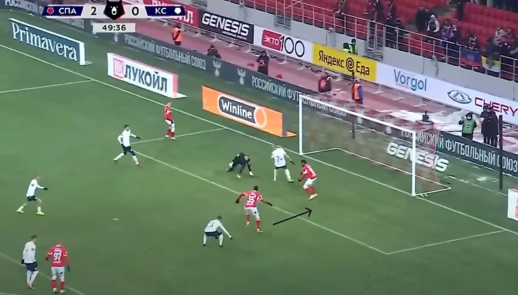 А ранний гол становится катализатором всех разрывов, как мы помним красно-белая команда очень хороша на пространстве, создавая моменты после врываний или высокого контрпрессинга Крыльев, а также активного перегружая фланги после подключений крайних защитников и смещений, нападающих создавали ситуации 2:1, а для быстрых игроков группы атаки Промесса, Зиньковского и Мартинса плюсуя высокую линию обороны, это были просто идеальные условия.