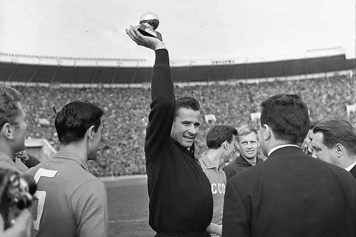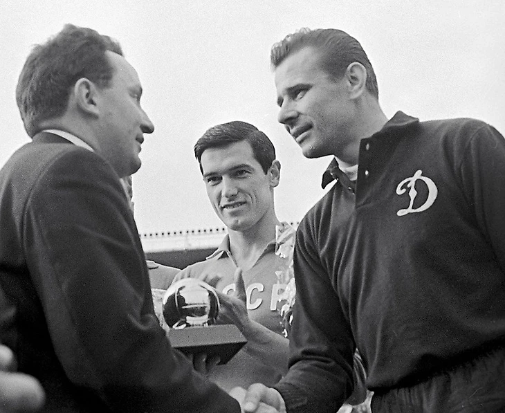 Редактор французского еженедельника France Football Макс Юрбини вручил Яшину «Золотой мяч» 27 мая 1964 года в Лужниках