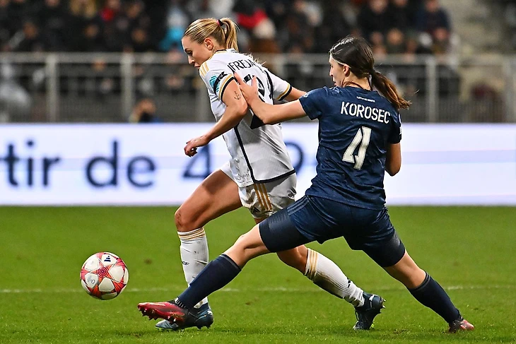 Во втором тайме гости вернулись, и Николь Райсла сравняла, что усложнило жизнь хозяйкам, так как им нужно было побеждать. Попытки выйти вперёд не увенчались успехом, но на 92-ой минуте франкфуртские «орлицы» получили замечательную возможность – Люсия Алвеш снесла Карлотту Вамзер в штрафной. Фрайганг с давлением не справилась: ударила не самым лучшим образом, и Лена Пауэльс парировала 11-метровый, сохранив второе место для команды и став героиней. Теперь у «Бенфики» огромные шансы на первый выход из группы.