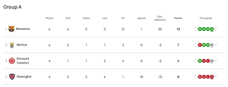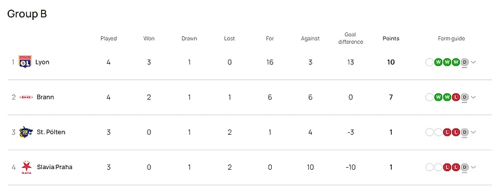 Положения в группах после четвёртого тура женской Лиги чемпионов 2023/24: