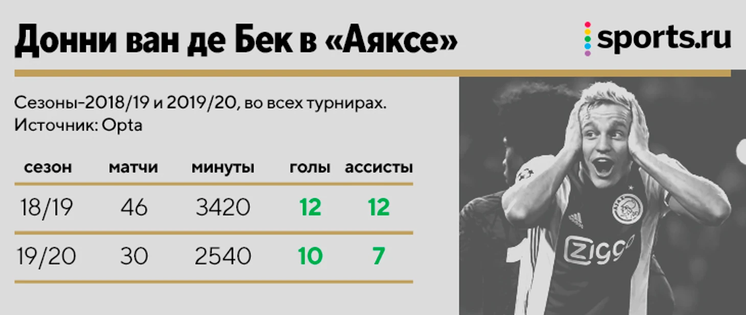 Ван де Бек не ушел из «Аякса» сразу после легендарного сезона-2018/19 (тогда клуб продал Де Йонга и Де Лигта) и отыграл в Амстердаме еще год.