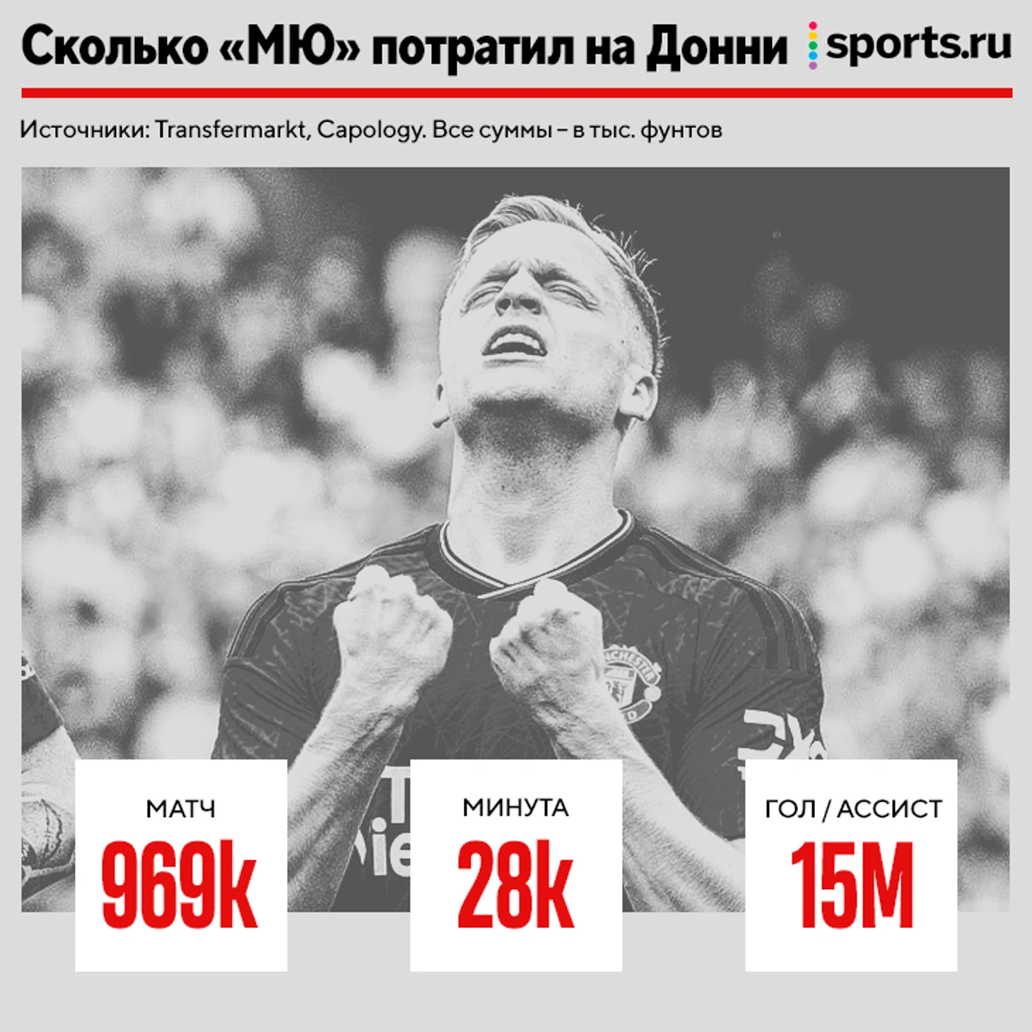 Зафиксируем еще раз: «Манчестер Юнайтед» заплатил 39 млн евро за футболиста, который по умолчанию уступал всем конкурентам по позиции. Клуб увеличил его зарплату почти в 4 раза. Итог – 23 матча в старте за 3 года. Донни ни разу не сыграл даже 30% из возможного игрового времени за сезон.
