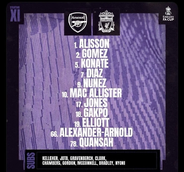 Ротация будет вряд ли или несерьезная, отдых был, обкатывать сыгрывать новые схемы на январь, без Салаха и Эндо, нужно. Да и Арсенал скорей всего выставит максимум, ибо статус соперника и домашний матч обязывают. Посмотрим кто как себя покажет у мерсисайдцев, от этого как всегда зависит много поскольку командная игра пока хромает... как всегда надеемся на Жоту)
