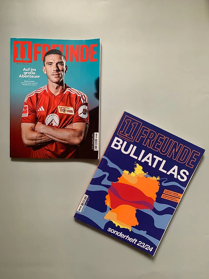 2-3) Немецкие журналы о футбольной культуре 11Freunde – 261-й (путеводитель по Бундеслиге) и 263-й (с Госенсом) номера за август и октябрь 2023 года.