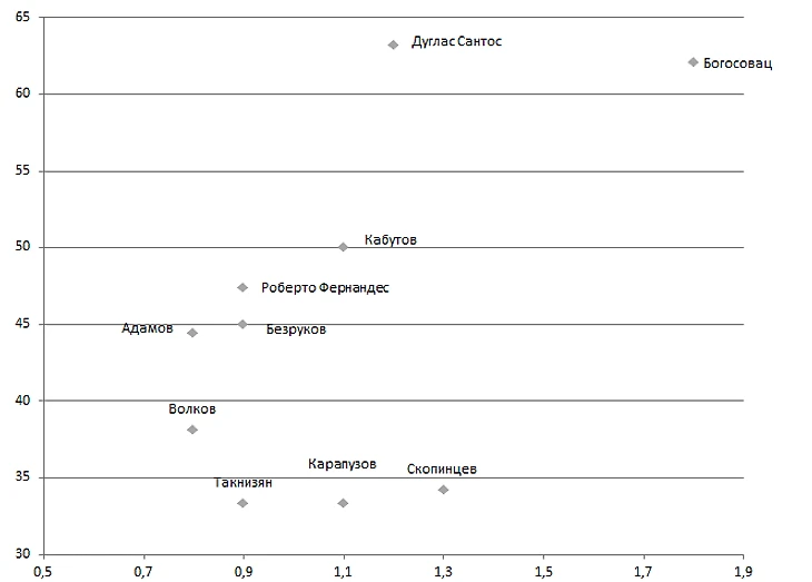 Мирослав Богосовац и Дуглас Сантос лучшие с отрывом в РПЛ