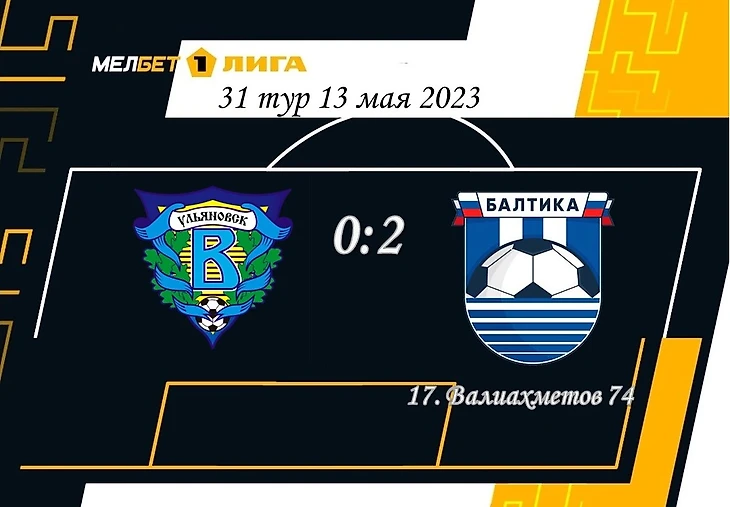 Также большие сложности при необходимости возвращения в Первую лигу будут и у «Волги». Ульяновцев в оставшихся турах календарь явно не жалеет, притащив в 31-м туре на «Труд» лидеров турнира, которые очень сильно не любят делиться очками. Валихаметов, год назад проигравший здесь с «Челябинском», снова вышел в старте. «Волга» неплохо атаковала и создавала моменты – Латышонок совместно с каркасом ворот все угрозы отвел. Невозможность реализации привела к тому, что хозяева стали безмятежнее. Но как бы ты не был спокоен, нужно помнить о стандартах «Балтики». Теоретически, конечно, все очень легко разбирается путем нескольких просмотров данных розыгрышей. А на деле – угловой на первой добавленной к тайму минуте знаменует открытие Гузиной счета в матче. Вроде бы Ульяновск вернулся в Первую лигу спустя 14 лет, а не 13. Но как же несчастливо складывается для черно-желтых сезон. Хозяева имели еще шансы в начале второй половины, но также все обошлось без забитых мячей. Лидеры чемпионата в первом тайме много играли через Валиахметова. На 64-й минуте Эдуард «заработал» для соперника предупреждение. Как и туром ранее в противостоянии с Антоном Килиным, «горчичник» получил Илья Кубышкин. На 81-й минуте гости реализовали еще один стандарт – Барков забил после ввода мяча из аута.