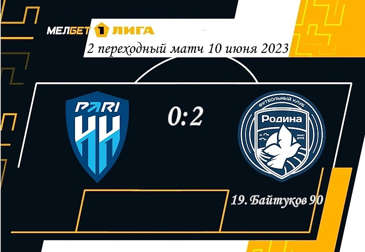 Байтуков играет очень высоко. Вместе с вышедший также на 65-й минуте крайним полузащитником Данилиным они создают сдвоенный фланговый кулак, но результата их действия не приносят. А вот уже в добавленное время хозяева непозволительно инертно играют в защите при нижегородской контратаке – и «Пари» доводит счет до разгрома. «Родина» 7 раз пробила в створ, но умудрилась при этом крупно проиграть дома – что делает их шансы на итоговый успех очень призрачными.