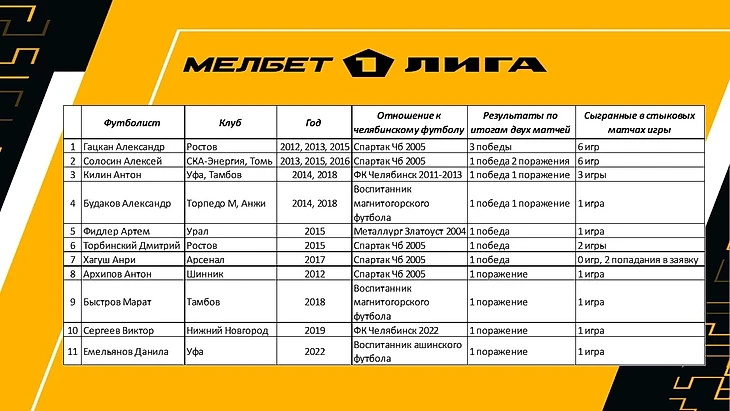 На 56-й минуте Юдинцев фолит, получая желтую карточку. Навес с этого штрафного приводит к удвоению счета. Предупреждение становится для крайнего защитника 4-м с учетом чемпионата. Соответственно, в ответной встрече он не сыграет. В связи с этим Парфенов на 65-й минуте выпускает Байтукова. Именно Руслан заменит Юдинцева во второй игре, поэтому привыкнуть к градусу борьбы с командой лигой выше просто необходимо. Байтуков становится 12-м представителем челябинского футбола в переходных матчах Премьер-лига – Первая лига. Интересно, что абсолютно ни один год проведения стыковых игр не обошелся без таких представителей (Проводятся «стыки» с 2012 года, в 2020 и 2021 годах было решено их не проводить).