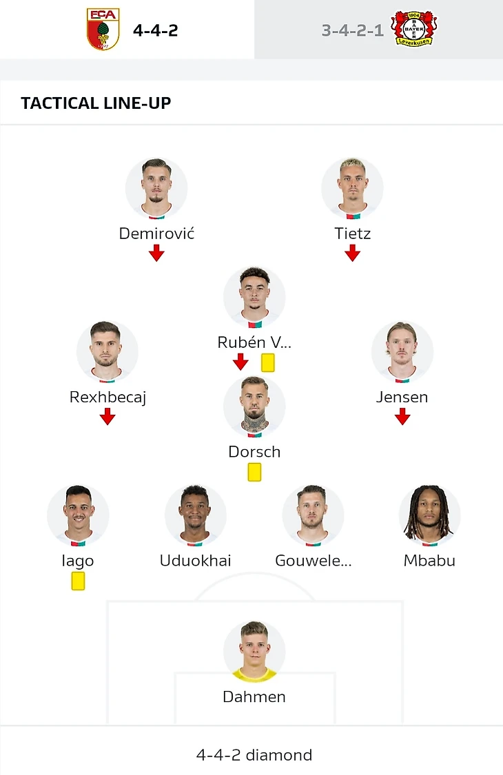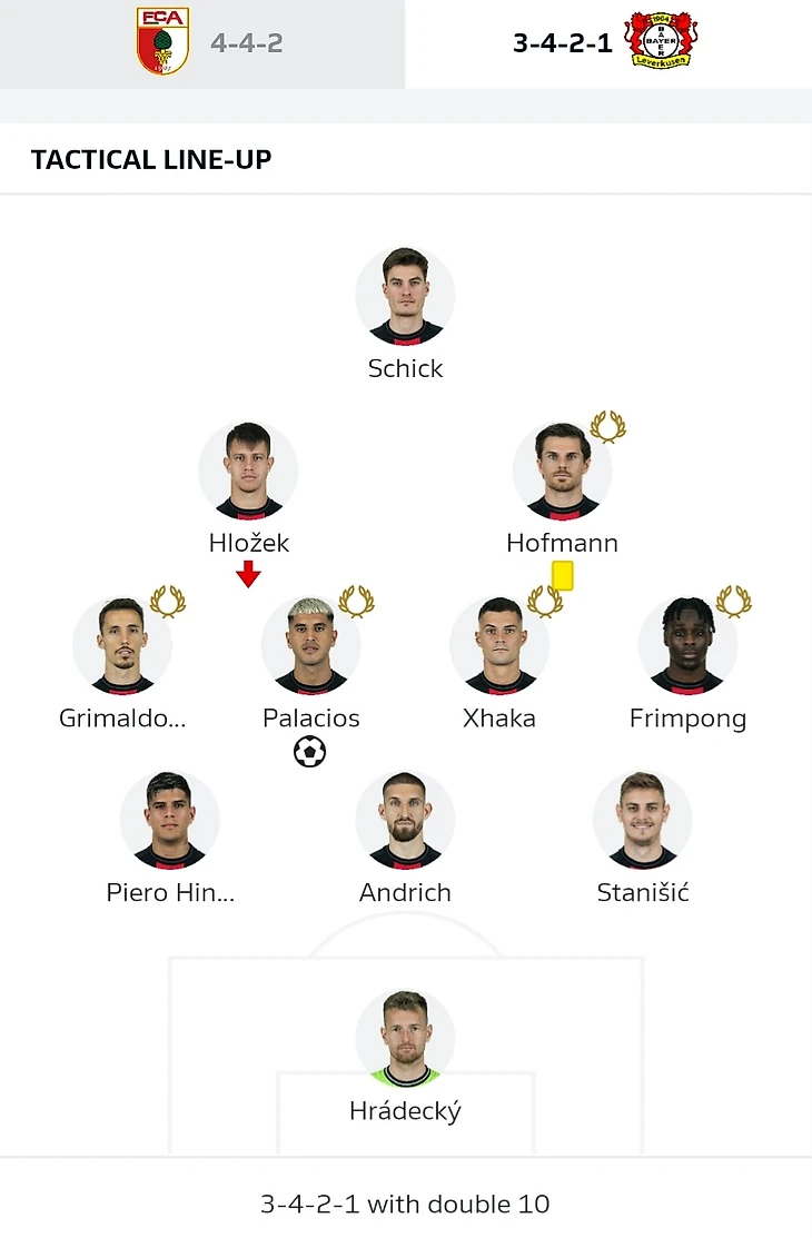 Поскольку «Байер 04» продолжал изо всех сил пытаться взломать надежную защиту «Аугсбурга», Хаби Алонсо попробовал новый импульс для нападения: плеймейкер Виртц заменил Гложека.