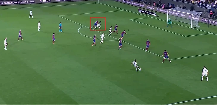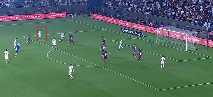 Здесь все было сделано идеально. Родриго отвлек внимание Араухо, Беллингем стянул на себя Де Йонга и Кристенсена. Винисиус выдержал линию офсайда, а затем Беллингем выдал точный пас выход Вини 1 на 1.