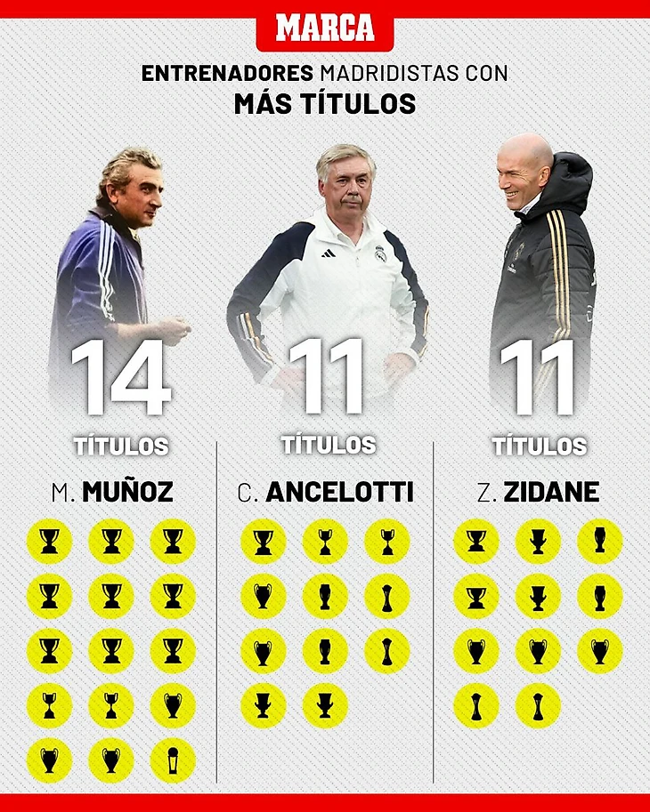 Анчелотти выиграл свой 11 титул у руля бланкос и догнал по этому показателю ЗиЗу. Впереди только Мигель Муньос с 14 титулами.